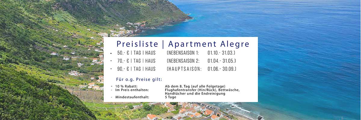 Sie erhalten ab dem 8. Aufenthaltstag bei uns 10% Rabatt auf alle Folgetage! Die Endreinigung ist im Preis inklusive. Wir holen Sie gerne vom Flughafen Santa Maria ab und bringen Sie bei Abreise auch wieder dorthin. Hierfür berechnen wir Ihnen nichts.